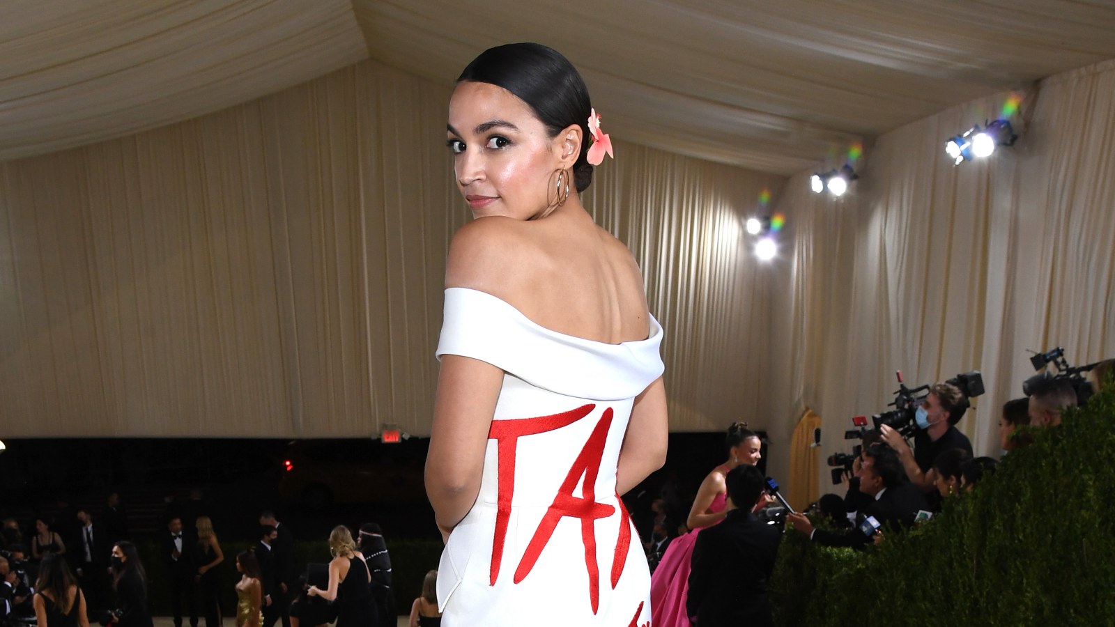 AOC Attends Met Gala in Tax the Rich Gown.
